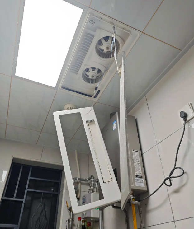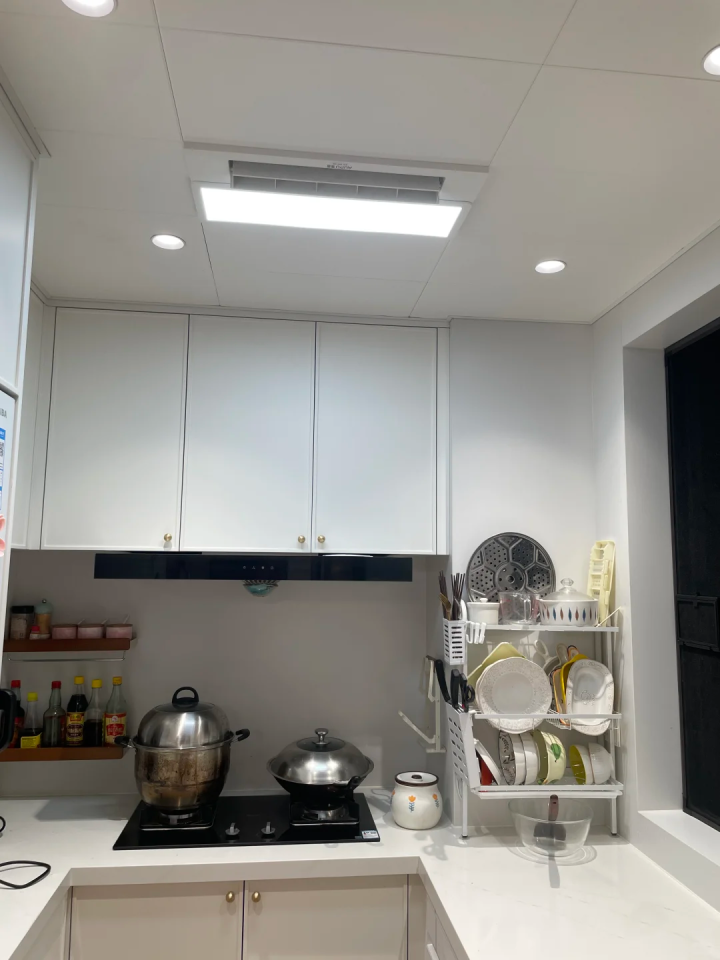 然而,看着高大上的厨房凉霸,实际上,就是隐藏在吊顶里边的一个普通风扇。