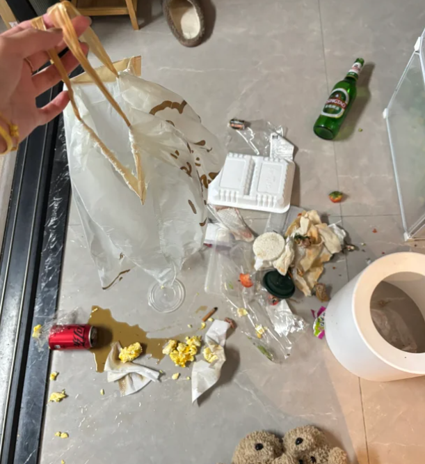 一旦垃圾袋破碎,厨余垃圾将会弄得地面上到处都是,怎么清理都清理不干净。