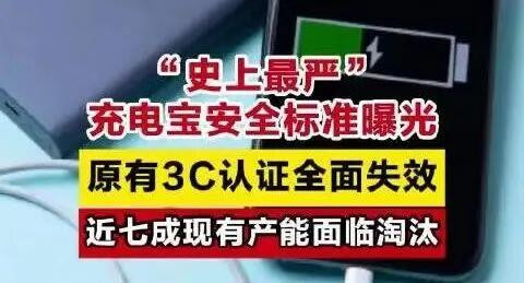近日,网络流传报道“‘史上最严’充电宝安全标准曝光,3C认证全面失效,近七成现有产能面临淘汰”,部分内容引发群众关注。