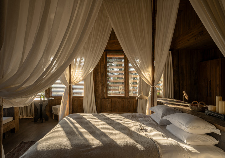 艺加设计和您一起赏析Songtsm度假酒店设计,大量使用木元素及木结构,不仅是形式的选择,更是精神的追求。摒弃浮华,让材料以其最原始的肌理与温度与人对话。空间因而成为一个会呼吸的生命体,弥漫着质朴、温馨与恬静的气息。