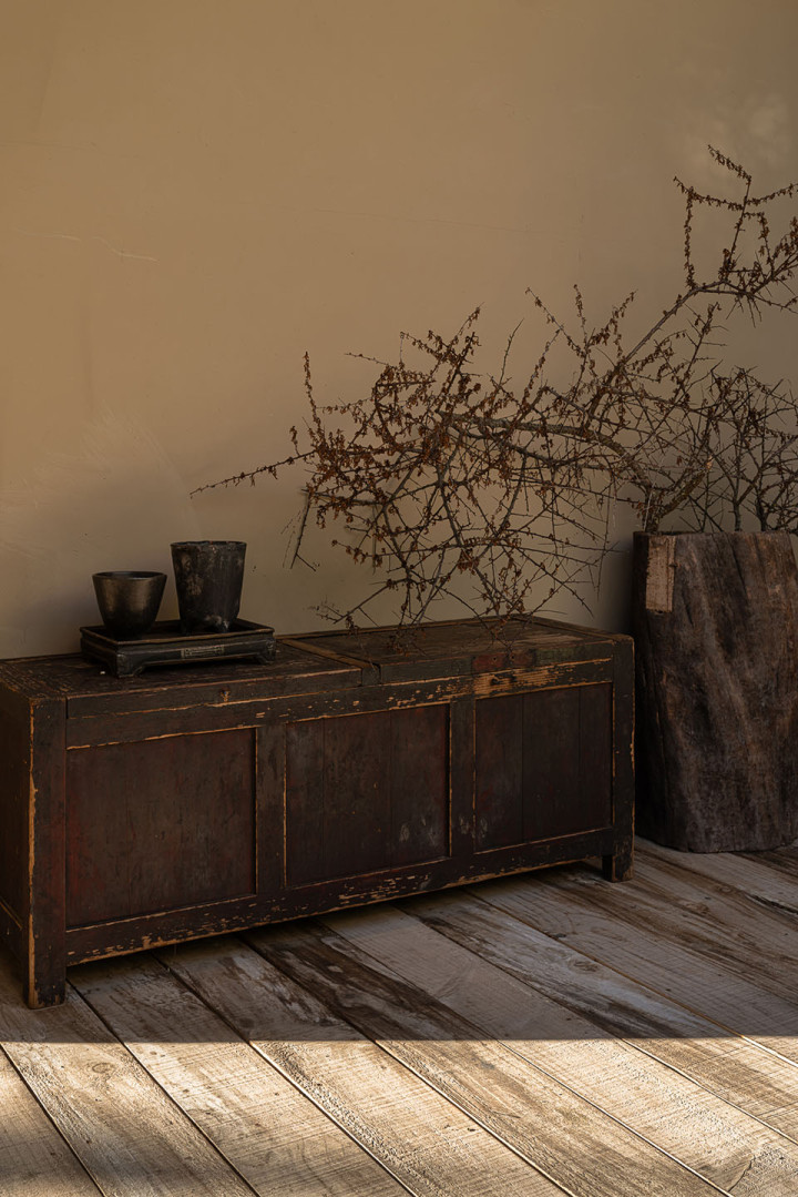 接待区设计意在打造一座温暖的时光容器,创造一种如同回到老宅客厅般的亲切与松弛。顶面选用历经岁月洗礼的老木板,以其独特的纹理与色泽,奠定空间温厚的故事感;墙面采用肌理丰富的艺术涂料,以手工感的不完美,呼应自然与时光的痕迹。